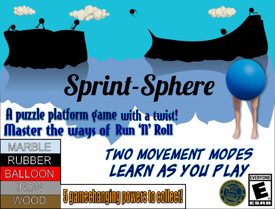 SprintSphere is a 3D physics platformer where the player can switch between rolling around as a ball or walking around on two feet.